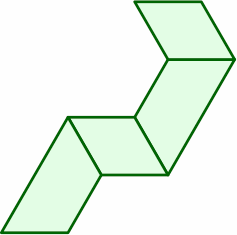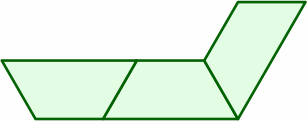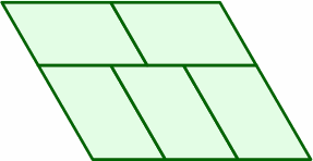The parallelograms are, as those above, mirror images of each other, but their size is now 3 area units. Each short side is 1 length unit, while each long side is 1.5 length units. Although a fraction, this latter number does not pose any problem in making tables line up neatly.