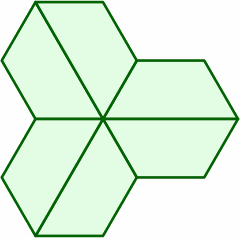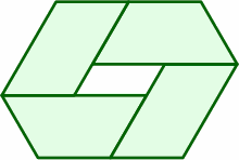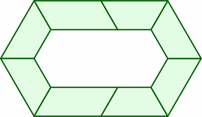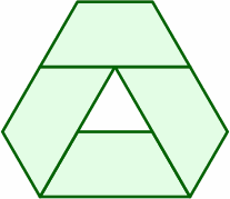 The hexagon at right is equivalent to two of the previously introduced traps back to back. Each side is one length unit.